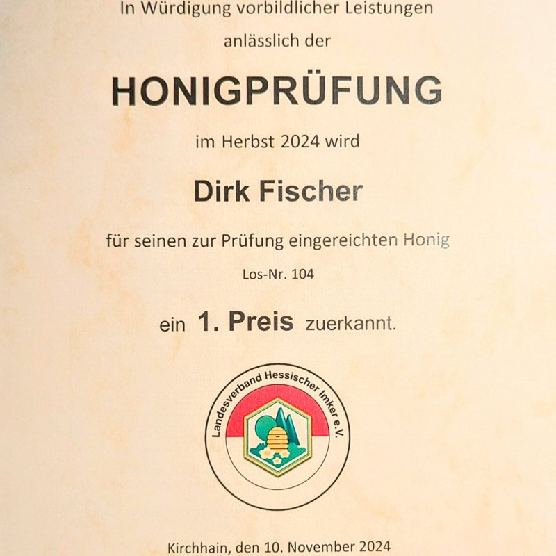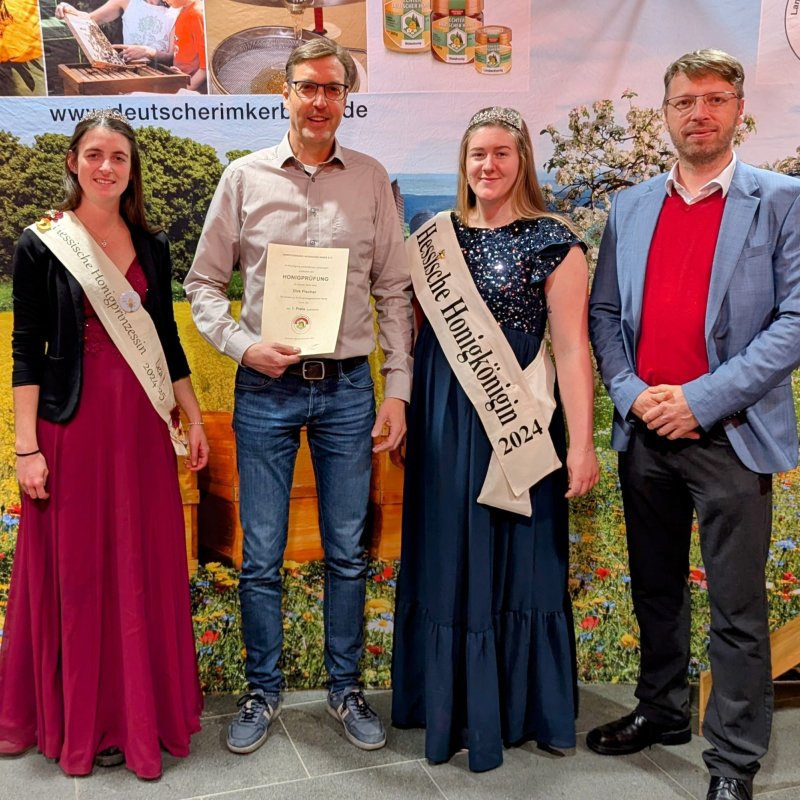 Freude über einen schönen Erfolg bei der Honigprämierung des Landesverbands Hessischer Imker. Zum ersten Mal haben wir in diesem Jahr mit unserem Sommertrachthonig daran teilgenommen und alle Kriterien für eine Goldmedaille erfüllt. Krotzebojer Honig ist halt der Beste 🥳Bei der Preisverleihung am Hessischen Honigtag in Langen, gratulierten die amtierende Honigkönigin Katharina und -prinzessin Lea, sowie der 1. Vorsitzendes des Landesverbandes Oliver Lenz. Auch die Rückstandsanalyse ist einwandfrei. Keines der über 30 getesteten Pestizide/Insektizide konnte nachgewiesen werden.